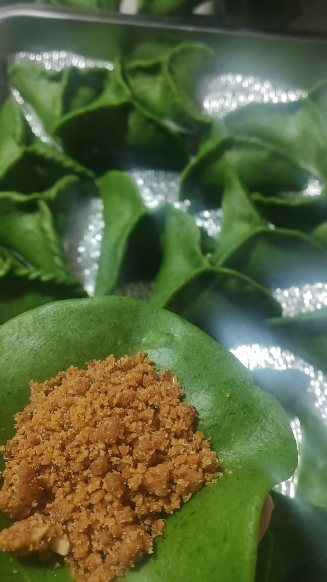 2. 制皮工艺:将新鲜艾草焯水去除苦涩味后,捣成细腻的艾泥,再与优质糯米粉、少量粘米粉按合适比例反复揉和。揉制好的面皮色泽青绿透亮,兼具软糯口感与韧弹质感,既不粘牙,也不易因蒸制而变形,是艾米果好吃的关键。