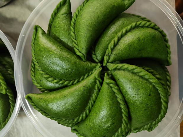 3. 包馅与蒸制:取揉好的面皮擀成薄坯,包入提前炒制的内馅。经典咸馅常以本地腊肉、鲜嫩春笋、香干、雪菜为主,咸鲜入味、香气浓郁;甜馅则可搭配红糖、花生碎、芝麻,香甜软糯不腻口。包好后捏出精致麻花褶,上锅大火蒸制,出锅瞬间艾香扑鼻,面皮的软糯与内馅的醇厚完美融合。