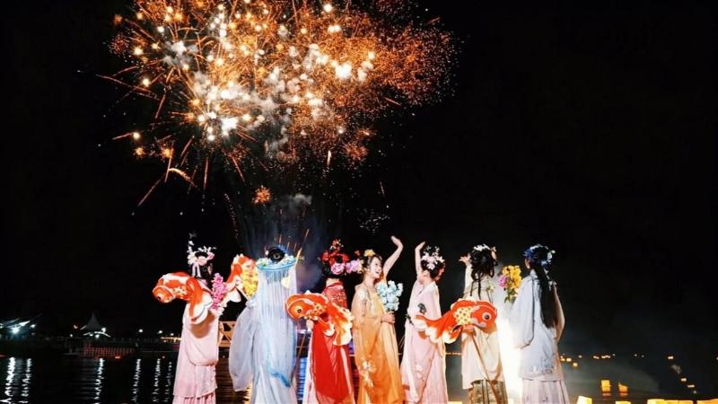 夜幕降临后,海灯奇妙夜浪漫启幕,成为假期文旅体验的一大亮点。花神夜巡、海灯祈福、湖心乐队演奏、鳌鱼巡游、环保冷焰火等活动轮番上演,以夜空为幕、光影为笔,将西海的夜色勾勒得璀璨动人。游客可亲手放飞海灯,寄托美好心愿,在璀璨光影与悠扬旋律中,感受西海夜晚的浪漫与温情,实现“白日赏山水古韵,夜晚赴光影盛宴”的全时段游玩体验。